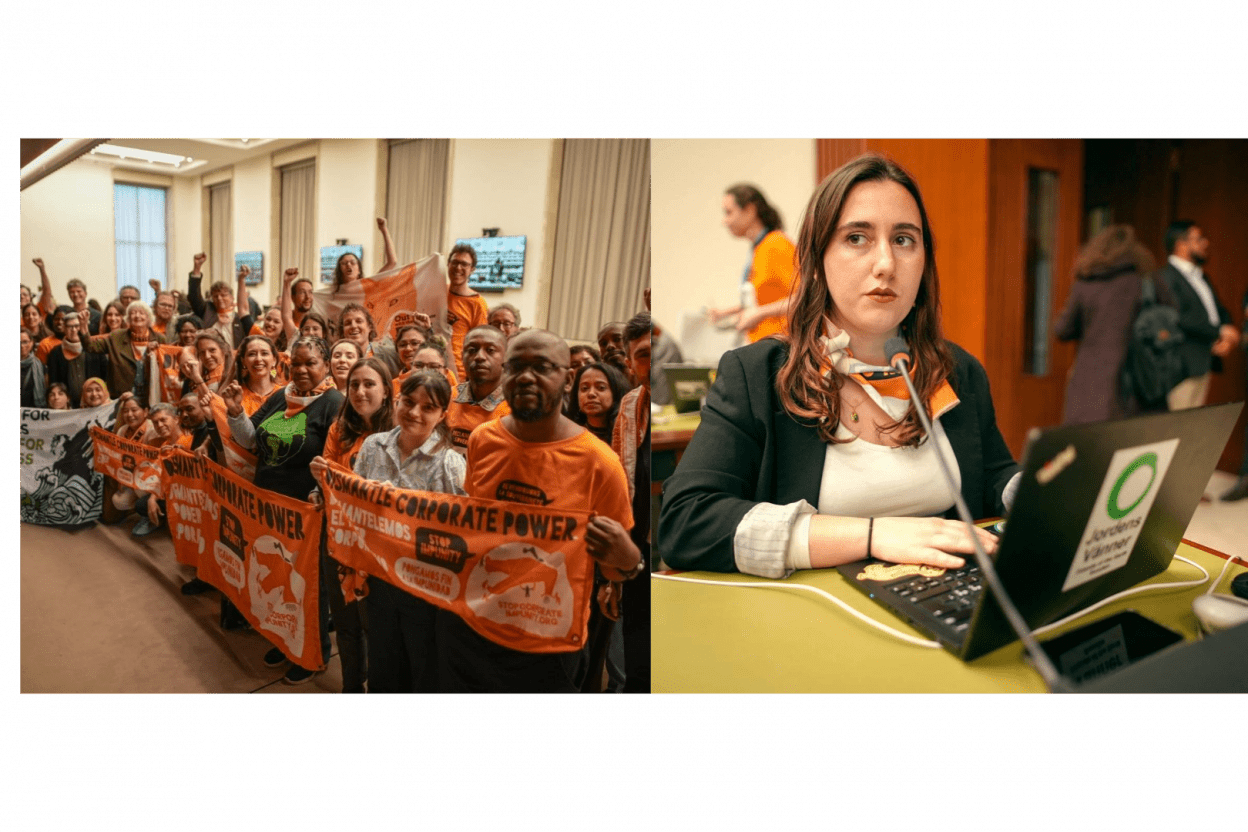 Abigail Hartshorn Guerrero attended the 11th negotiations of the UN Legally Binding Treaty on Business and Human Rights where she spoke on behalf of Jordens Vänner (Friends of the Earth Sweden) and Young Friends of the Earth.